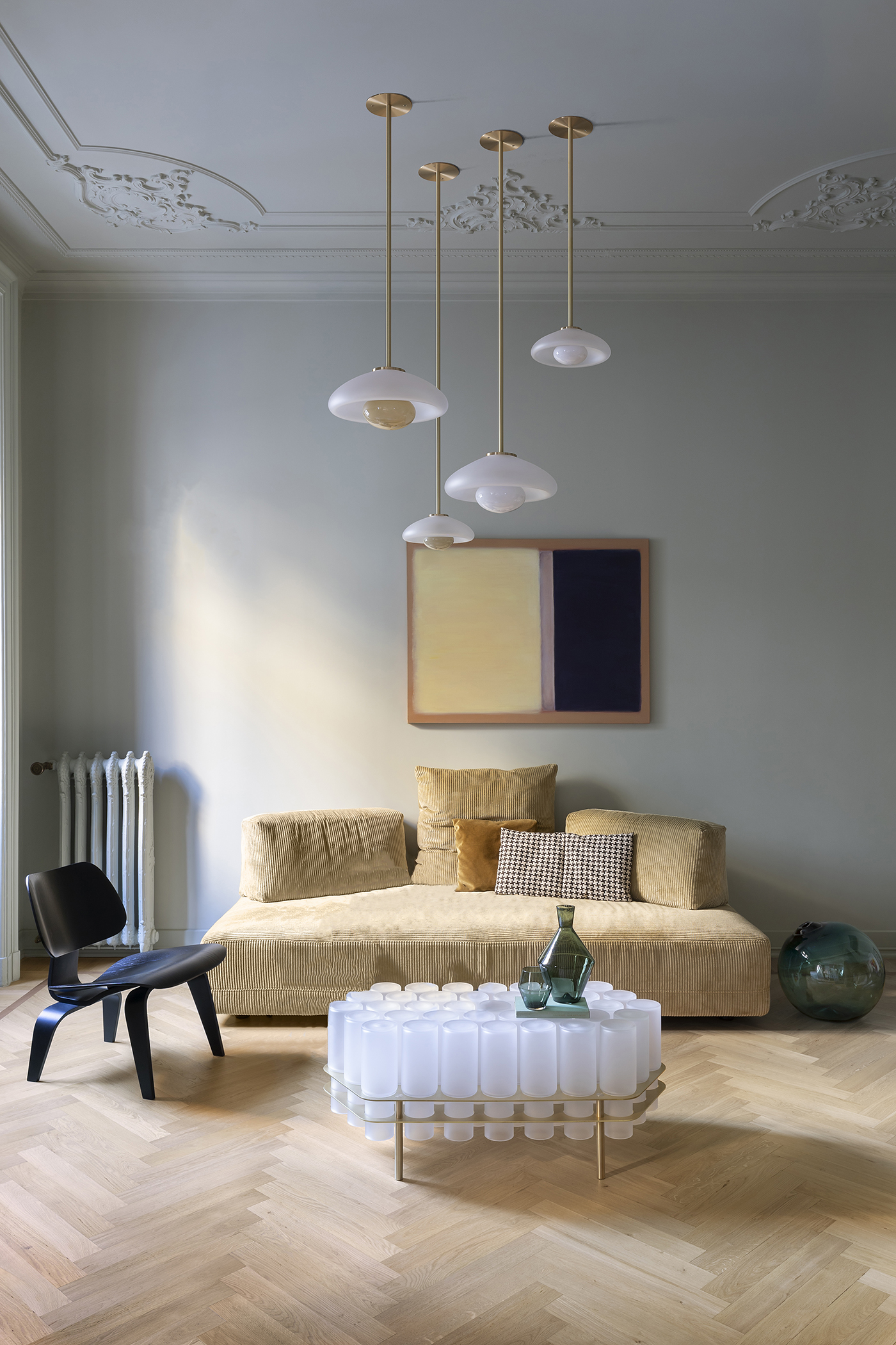 The intriguing curvaceous forms of the Pillow collection, combined with the sort of compelling glass color palette SkLO is known for, results in lighting designs that are unexpected and engaging. Pendants, wall sconces, and flush ceiling designs bring the endless opportunities to any interior environment. The high-quality materials and craftsmanship are what make the Pillow collection so irresistibly moody and playful.
